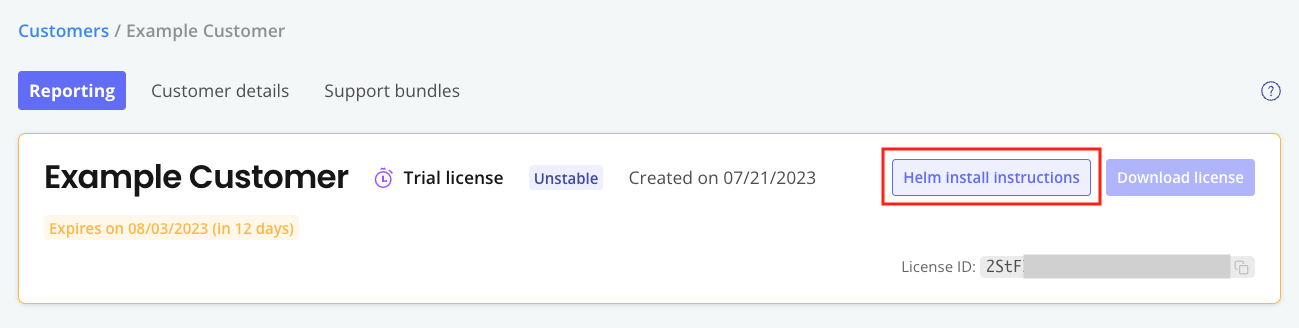 • The customer used to install must have the Existing Cluster (Helm CLI) install type enabled. If installing into an air gap environment, additionally enable the Helm CLI Air Gap Instructions option for the customer. For more information about enabling install types for customers in the Vendor Portal, see Manage Install Types for a License.
